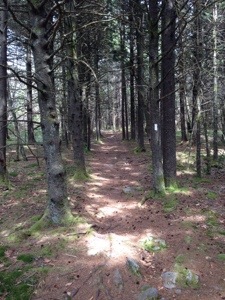 After the splendor of Beauty Spot, I had to struggle up Unaka Mountain, which was quite a treat at the top, with a really beautiful forest of spruce. Note the ubiquitous white blaze in the right foreground; these blazes were particularly necessary in this forest to avoid getting completely lost.