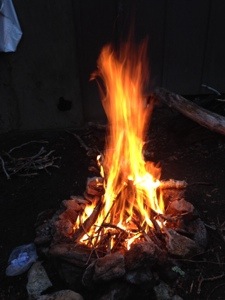 The rain subsided and a Kiwi, named Jandle, set about building the biggest and best bonfire I’ve seen. It was terrific and we were all warmed and buoyed by the fire.